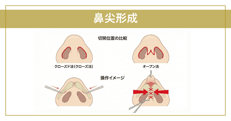 鼻尖形成には、主にクローズド法とオープン法の2つの手術法があります。それぞれの手術法には特徴があり、患者様の鼻の状態や希望する仕上がりに応じて、適した方法が選ばれます。この記事では、鼻尖形成とは何か、そしてクローズド法とオープン法の違いについて詳しく解説していきます。