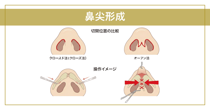 鼻尖形成の手術方法(クローズ法・オープン法・非切開)