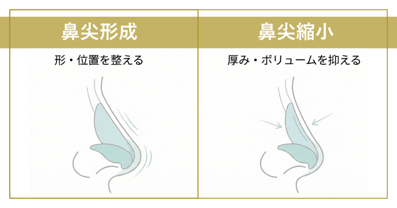 鼻尖形成と鼻尖縮小は、どちらも鼻先を整える施術ですが、目的とするアプローチに違いがあります。
