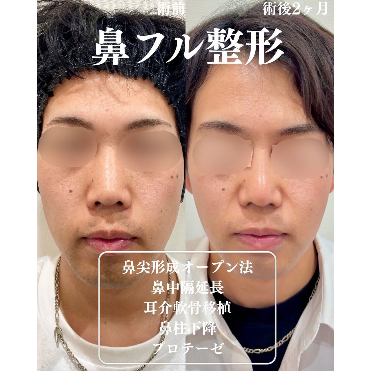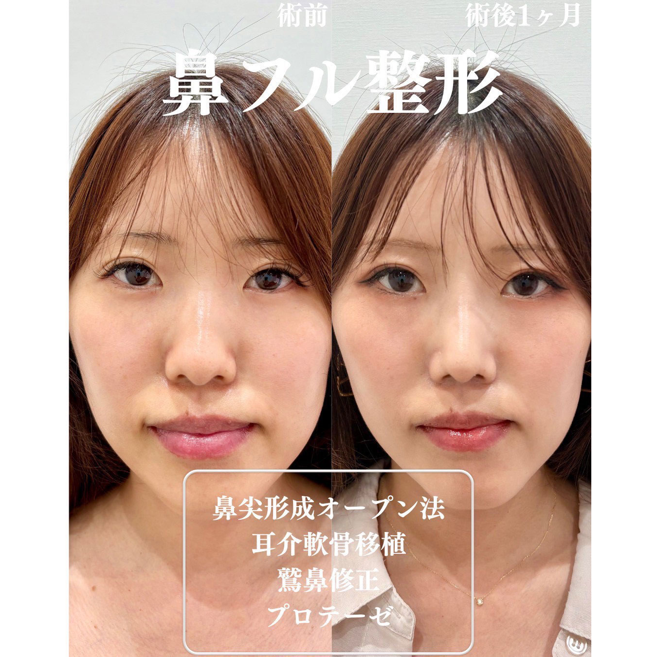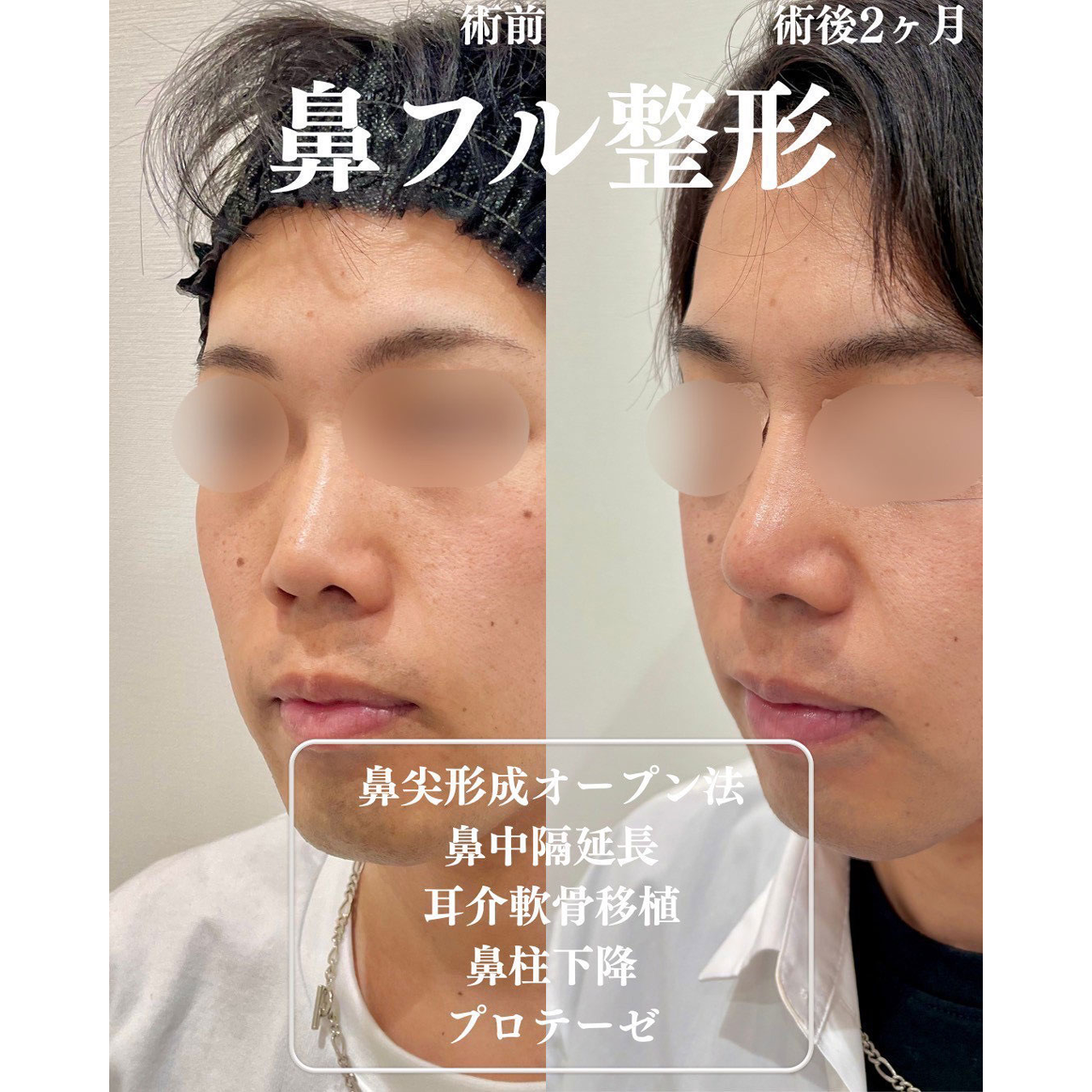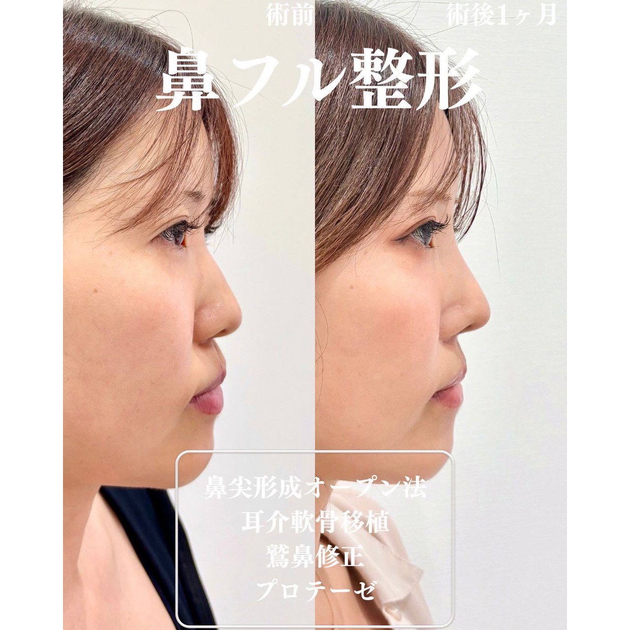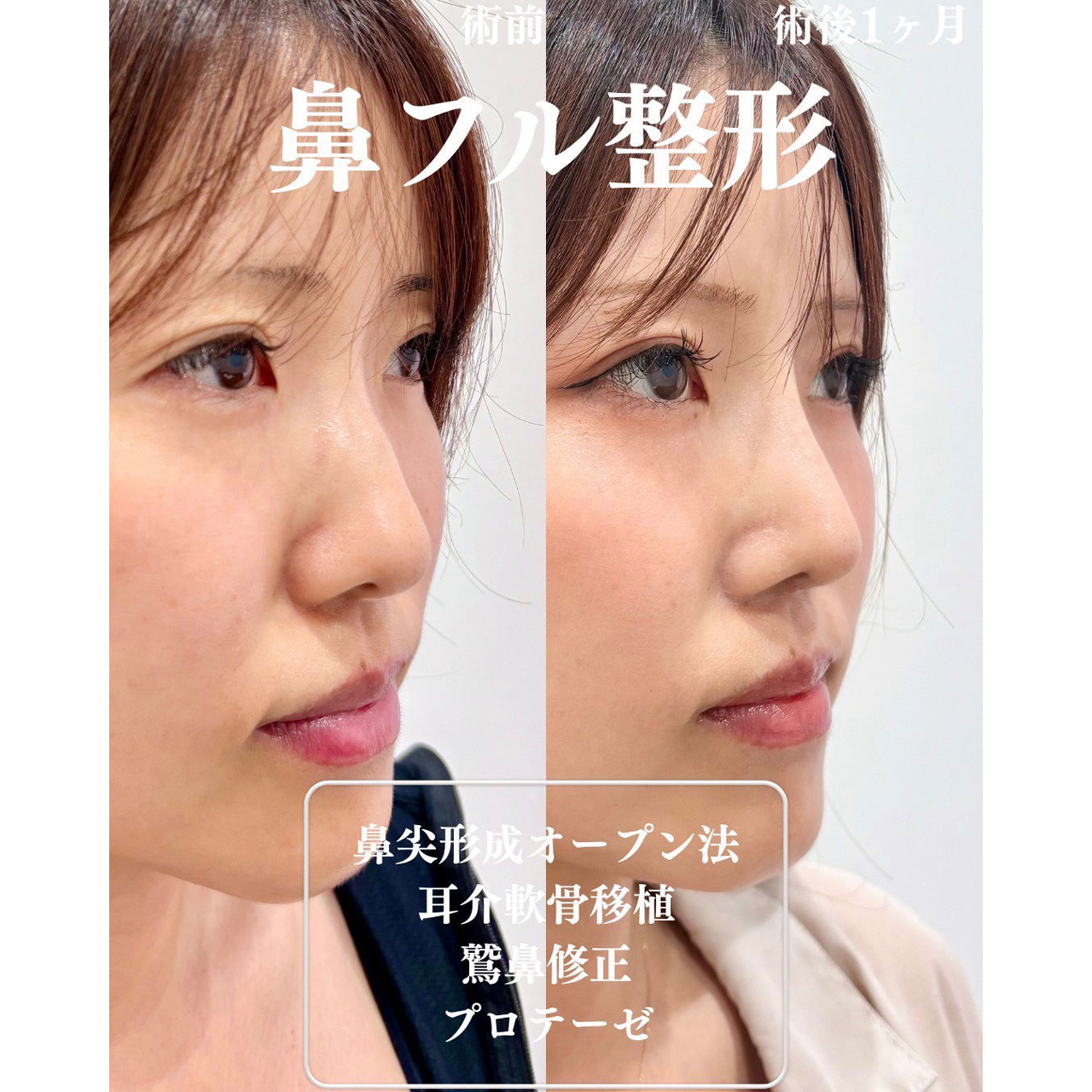 鼻先を少しだけ高くしたい方には耳珠軟骨移植を、しっかりと高さを出したい方には「鼻中隔延長+耳介軟骨移植+鼻尖形成オープン法」といった複合的な施術をご提案できます。